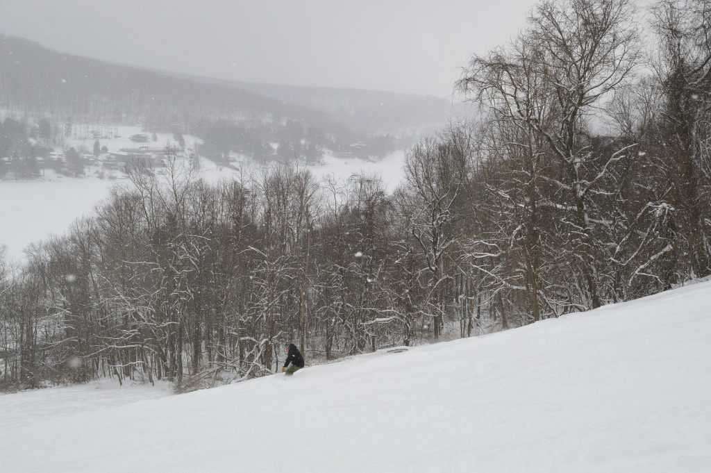 Out here in the Mid-Atlantic we’re no strangers to a light dusting. This current storm system is anything but light – delivering 12+ inches of champagne powder. Oh, and in case you haven’t been outside, it’s still coming down. The groomers today are leaving little the imagination with a nice strong base underneath and plenty of fresh snow to carve-up. Our powder runs, Odin’s and Mainstreet, are exceptionally snowy keeping us young and reminding us what winter is all about. Get it while you can!
